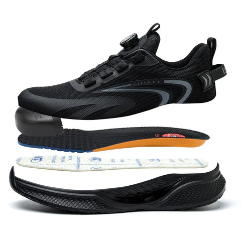 Mit dem integrierten Drehverschluss sitzt der Schuh in Sekunden perfekt am Fuß. Kein Nachziehen, kein Lockern während der Arbeit. Einfach drehen – fester Sitz.